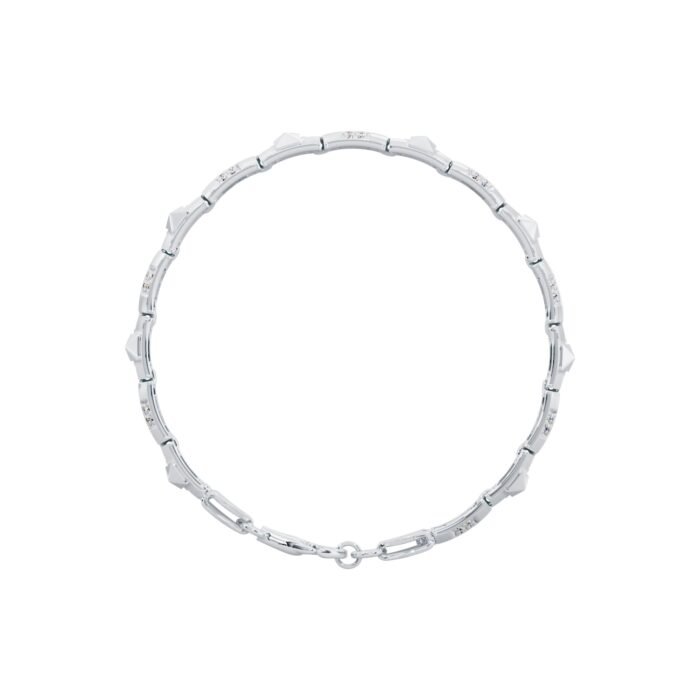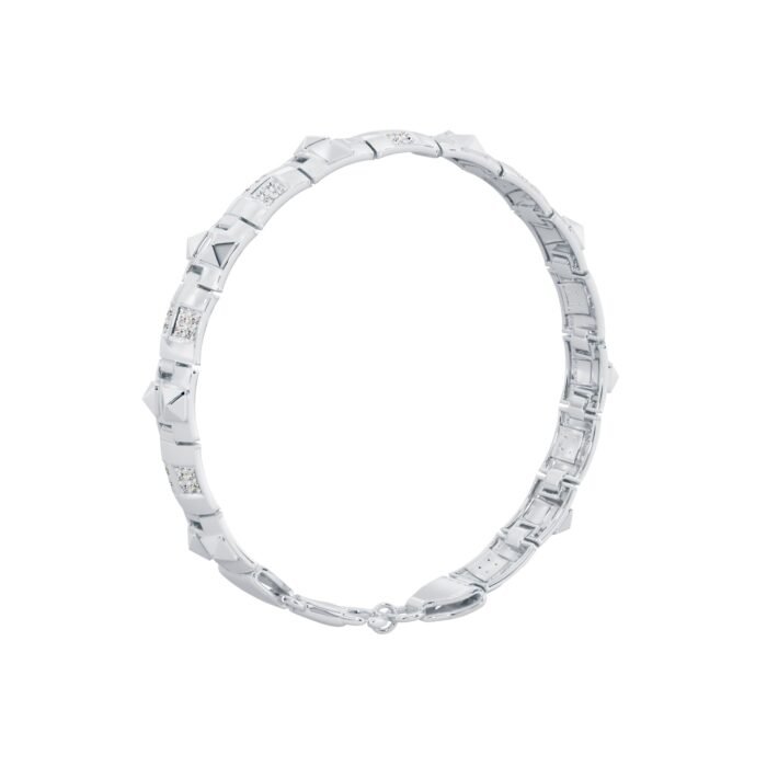 Craftsmanship is at the heart of this luxurious square diamond studded silver bracelet. Every detail is carefully considered to provide the highest quality accessory. The diamonds are selected for their brilliance and clarity, while the silver is polished to a mirror-like finish. The result is a bracelet that not only looks spectacular but also feels comfortable on your wrist. It is also available in different sizes and colors.