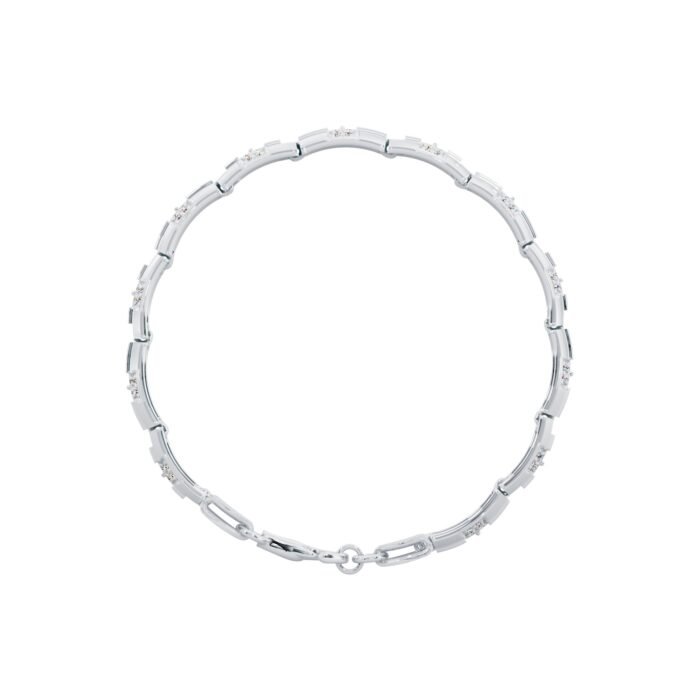 Craftsmanship is at the heart of this luxurious square diamond studded silver bracelet. Every detail is carefully considered to provide the highest quality accessory. The diamonds are selected for their brilliance and clarity, while the silver is polished to a mirror-like finish. The result is a bracelet that not only looks spectacular but also feels comfortable on your wrist. It is also available in different sizes and colors.