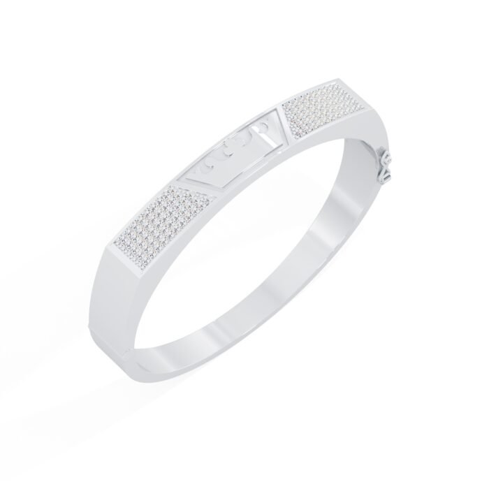 Craftsmanship is at the heart of this luxurious square diamond studded silver bracelet. Every detail is carefully considered to provide the highest quality accessory. The diamonds are selected for their brilliance and clarity, while the silver is polished to a mirror-like finish. The result is a bracelet that not only looks spectacular but also feels comfortable on your wrist. It is also available in different sizes and colors.