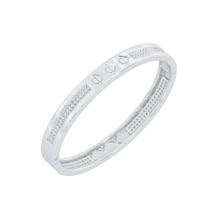 Craftsmanship is at the heart of this luxurious square diamond studded silver bracelet. Every detail is carefully considered to provide the highest quality accessory. The diamonds are selected for their brilliance and clarity, while the silver is polished to a mirror-like finish. The result is a bracelet that not only looks spectacular but also feels comfortable on your wrist. It is also available in different sizes and colors.